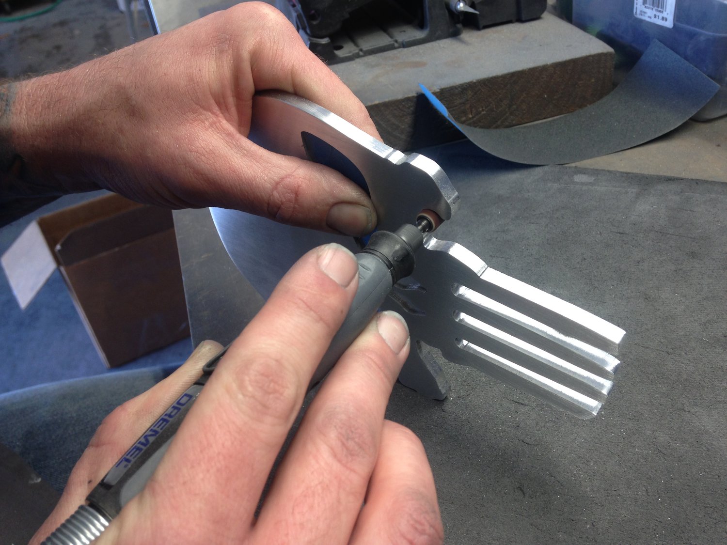 Your 3-D model is programmed into an automated CNC machine. The machine robotically mills away all of the excess material from a solid piece of high grade billet aluminum until your badge is all that remains. The part is then ready for finishing.
