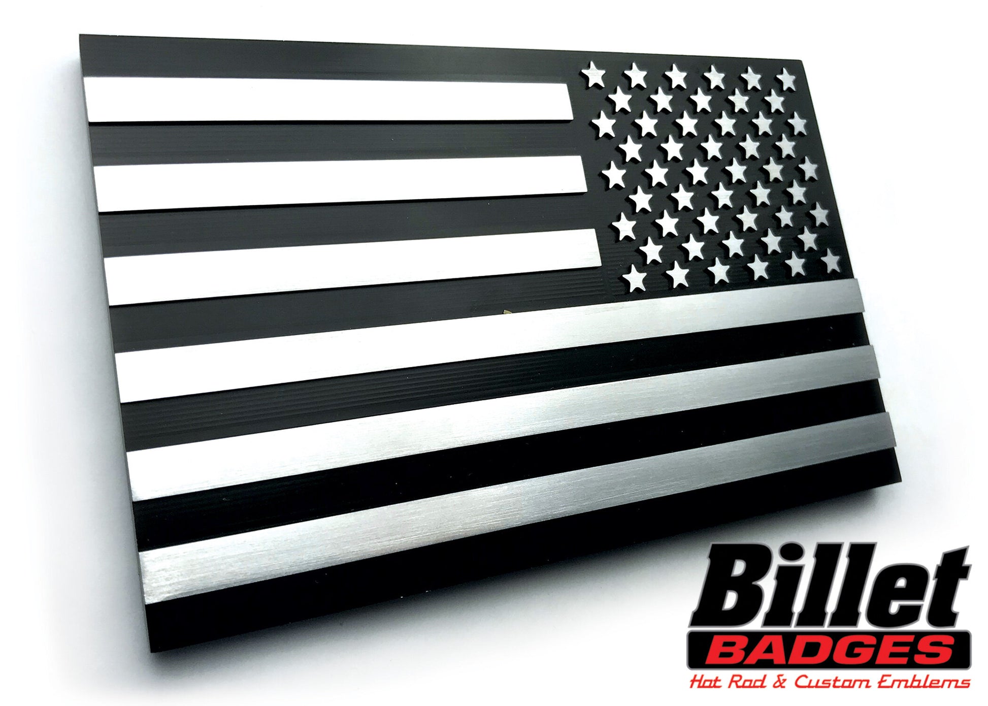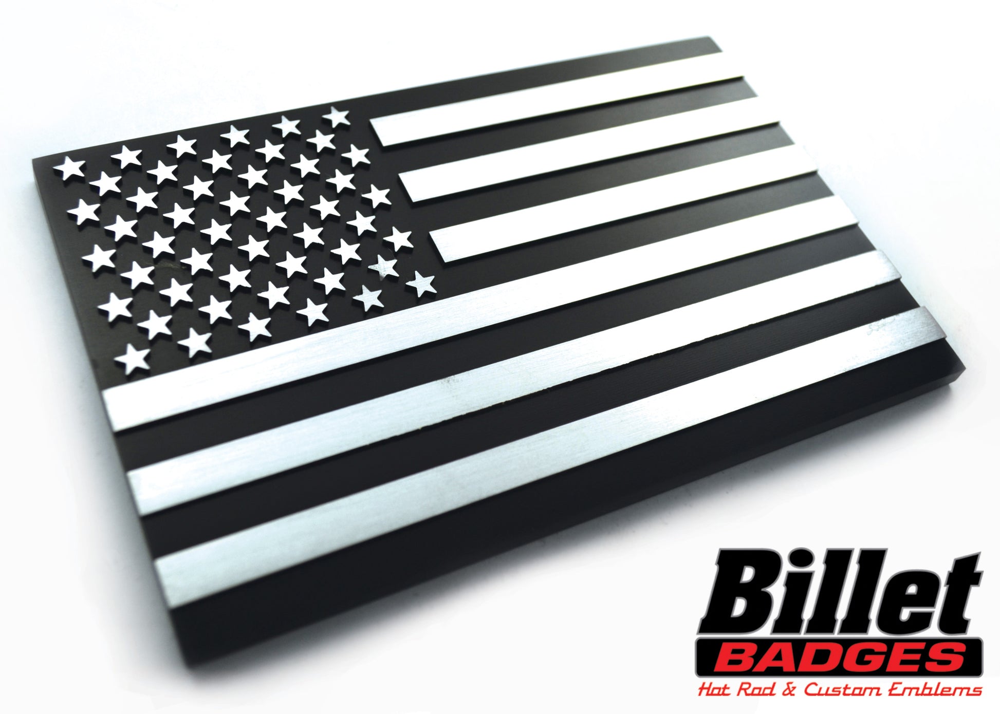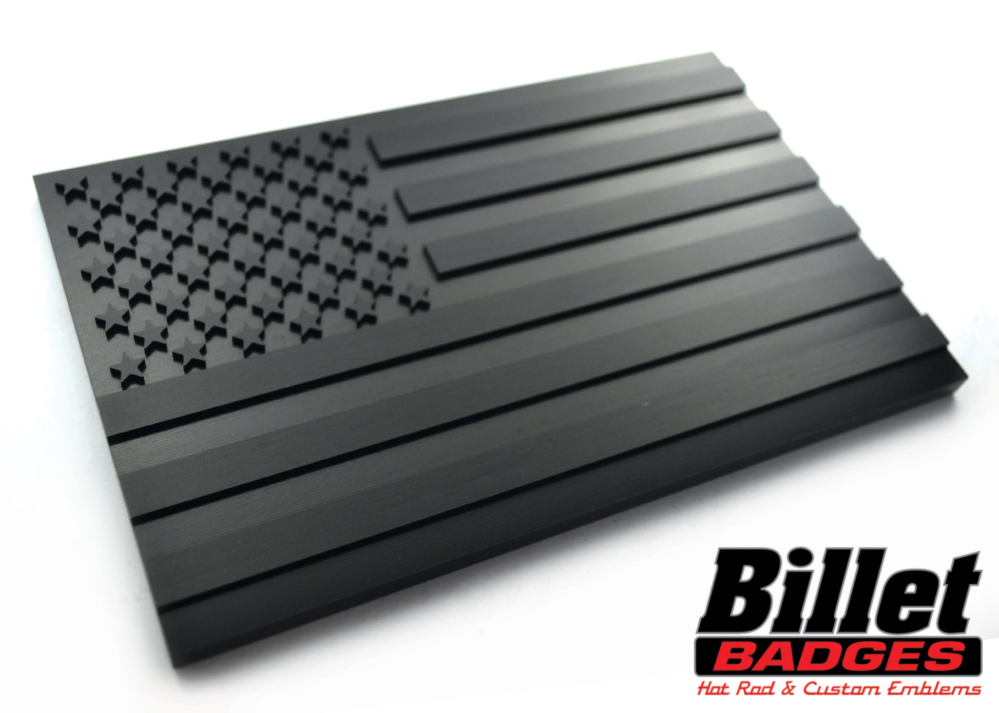 CNC-Machined Billet Aluminum Badge. Comes with 3M-VHB adhesive backing for easy & secure installation. Proudly made in the U.S.A.